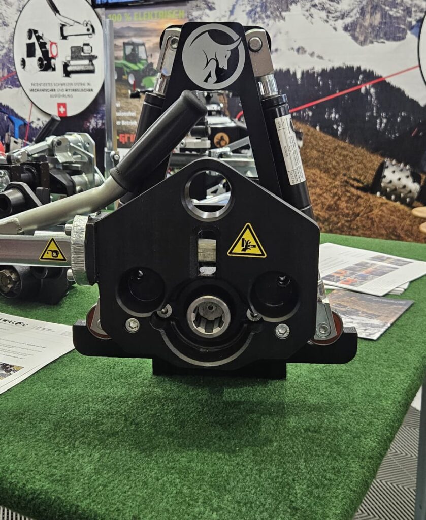 Das Bewaloc-Koppelsystem BG2 am E-Grip erweitert die Einsatzmöglichkeiten deutlich: Es ermöglicht sowohl das Koppeln mechanischer als auch elektrisch angetriebener Anbaugeräte. Besonders hervorzuheben ist, dass über diese Schnittstelle bestehende mechanische Anbaugeräte verschiedener Marken – wie Aebi, Rapid oder Köppl (SMK, KOM, KDP) – sowie Geräte von Brielmaier Ibex in elektrischer Ausführung problemlos eingesetzt werden können.