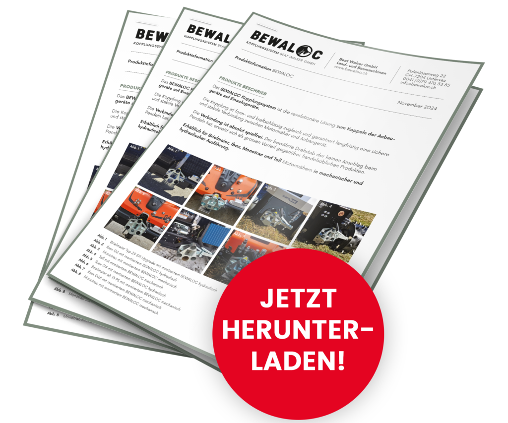 Das BEWALOC-Kopplungssystem bietet eine sichere, spielfreie Verbindung zwischen Motormäher und Anbaugerät, ist langlebig und sowohl mechanisch als auch hydraulisch erhältlich. Detaillierte Produktinformationen finden Sie im ausführlichen Beschrieb.